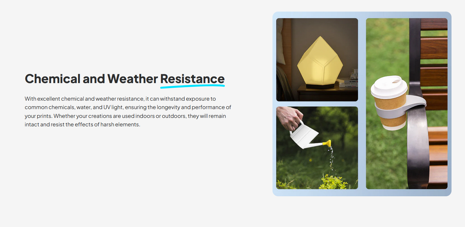 - Más resistente y duradero: material tenaz y resistente al impacto, ideal para piezas funcionales.