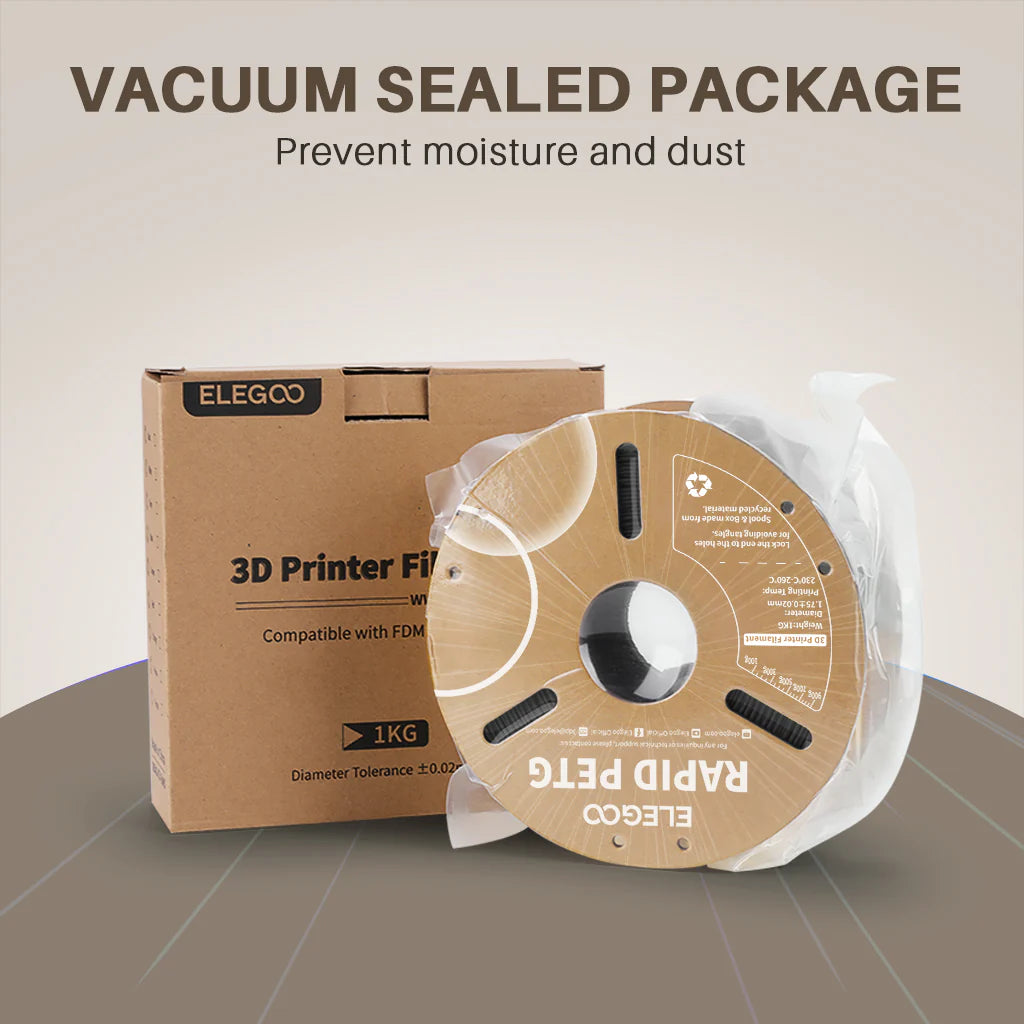 - Fácil de imprimir y mejor cuidado del filamento: buen flujo, bajo warping/encogimiento, bobinado ordenado y viene secado + sellado al vacío con desecante para minimizar burbujas y atascos.